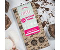 Chocolate 70% cacao sin azúcar (masa de cacao, maltitol, manteca de cacao, lecitina de soya, vainilla), coco rallado (20%).