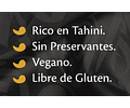 Ingredientes: Garbanzos, tahini (pasta de sésamo), agua, sal, ají verde, limón, pimiento verde, ajo, comino, finas hierbas (romero, menta, tomillo, cilantro) y ácido cítrico.